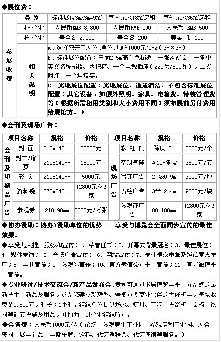 會刊宣傳:大會將制作1萬份會刊,免費(fèi)贈予專業(yè)觀眾和參展商,4個(gè)展位以上展商將獲重點(diǎn)推介(包括官方微博、官方微信、官網(wǎng)LOGO鏈接、郵件推廣、短信推廣、365天供需配對服務(wù)等);