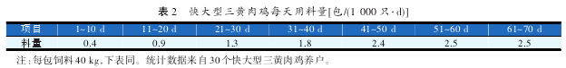 3.1快大型三黃肉雞每天用料量(見(jiàn)表2)