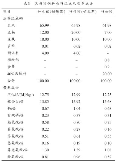 在重慶市畜牧科學(xué)院榮昌豬國家級(jí)資源保護(hù)場保種核心群中隨機(jī)選取7月齡以上成年榮昌豬種豬32頭。其中,種母豬20頭(妊娠期12頭,哺乳期8頭):10~11月齡2頭,1~2年4頭,2年以上14頭;種公豬12頭,全部為已配種公豬:7~11月齡4頭,1~2年5頭,2年以上3頭。