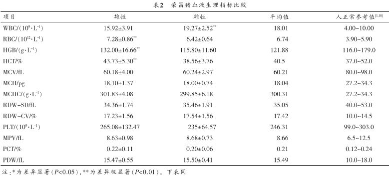 2.1 榮昌豬血液生理指標(biāo)測定結(jié)果