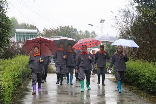 返回途中,正趕上豬場(chǎng)員工中午下班時(shí)間,只見(jiàn)十幾個(gè)員工穿戴整齊,臉上洋溢的輕松滿(mǎn)意的笑容,周總裁邀請(qǐng)他們與大家一起合影,員工們欣然答應(yīng)。