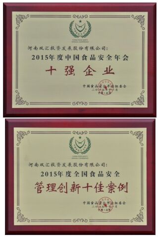來自全國人大、全國政協(xié)、國務院有關部委以及全國食品行業(yè)的領導參加了此次大會,共話“新法護航食安夢,社會共治保民生”。此次大會對食品安全作出突出貢獻的企業(yè)和個人進行了表彰,雙匯發(fā)展榮獲“2015年度中國食品安全年會十強企業(yè)”、“2015年度中國食品安全年會管理創(chuàng)新十佳案例”等榮譽。