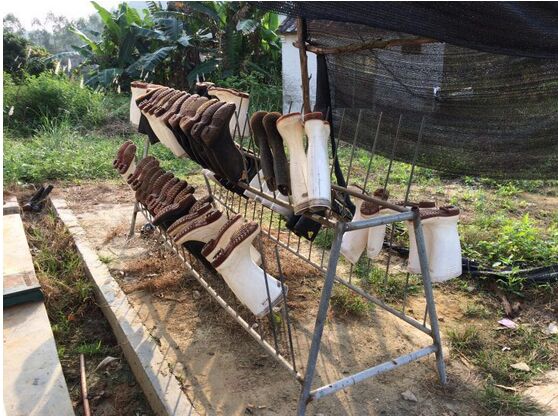 來(lái)溫氏養(yǎng)豬訓(xùn)練營(yíng)第3天,終于有機(jī)會(huì),洗4次澡后下豬場(chǎng)和豬豬親密接觸并欄舍里實(shí)操演練了。今天演練的科目是選后備母豬和公豬采第精程序?qū)W習(xí)。小伙伴們都非常的新鮮激動(dòng),穿上豬場(chǎng)專(zhuān)用工作服拿上筆記本感覺(jué)嫣然有模有樣一豬場(chǎng)養(yǎng)豬人。豬場(chǎng)防疫管理不得不為該豬場(chǎng)養(yǎng)豬人點(diǎn)贊,首先進(jìn)出都要洗澡,連鞋都是通過(guò)顏色區(qū)分區(qū)域,洗澡后進(jìn)入養(yǎng)殖區(qū)是穿白色水鞋,進(jìn)入豬舍區(qū)要換成黑色水鞋,進(jìn)戶(hù)入戶(hù)前都要用豬場(chǎng)專(zhuān)用消毒水消毒防疫。教練告訴我們?yōu)榱藴p少防疫壓力日常工作一定要做好。
