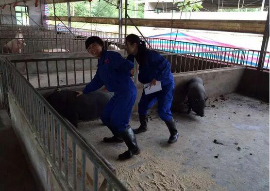 下午的學(xué)習(xí)內(nèi)容讓男同學(xué)們十分興奮,學(xué)習(xí)給公豬采精。首當(dāng)其沖的是羅士津同學(xué),據(jù)說(shuō)他媽媽生他下來(lái)時(shí)只有“四斤”,但又希望他四兩撥千斤。畢業(yè)于江西農(nóng)業(yè)大學(xué)的他,是我們班的學(xué)習(xí)委員,上課第一天,他就很認(rèn)真的對(duì)我說(shuō):“你要認(rèn)真聽(tīng)課啊,到時(shí)候要考試的?!彼腔鹧劢鹁Γ豢淳椭牢业摹暗准?xì)”,還抓住我的“尾巴”不放。他技術(shù)功底過(guò)硬、專(zhuān)業(yè)技術(shù)扎實(shí),是學(xué)霸型的“悶騷男”、技術(shù)男、把教練講過(guò)的采精要點(diǎn)一一陳述,旁邊配合他的假冒“公豬”的搭檔同學(xué)忍受不了他的“學(xué)究氣”,干脆在假母臺(tái)上“行動(dòng)”了起來(lái),“公豬”迫不及待的配合動(dòng)作讓整個(gè)豬舍笑聲四起。