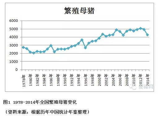 從上我們發(fā)現(xiàn),1994年進(jìn)入3000萬頭,2001年進(jìn)入4000萬頭,2005年到了4980萬頭,以后這10年就沒有降到4500萬頭。1994-2001年間16年增長了1000萬頭,2001-2005年間,這5年增長了1000萬頭。我們仔細(xì)回憶2001-2005年間整個中國經(jīng)濟(jì)處于高速發(fā)展時期。2001年GDP突破10萬元大關(guān),到2005年接近20萬億元,中國養(yǎng)豬業(yè)搭上這是經(jīng)濟(jì)發(fā)展的“高鐵”列車。2006-2014年又是10年,繁殖母豬數(shù)量一直在4500-5000萬頭跳躍發(fā)展。GDP從20萬億元到60萬億元快速發(fā)展。