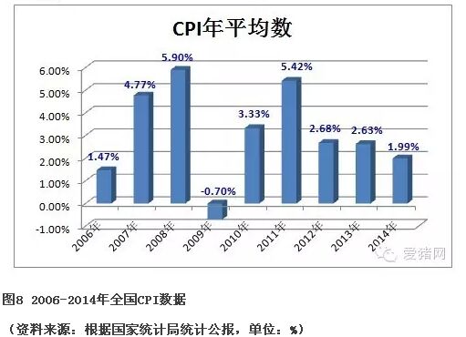 2014年全年平均CPI為1.99%。2006—2013年,全年CPI分別為1.47%、4.77%、5.90%、-0.70%、3.33%、5.42%、2.68%、2.63%,扣除2009年外,2014年為最低。這與中央確定下行壓力過強(qiáng)、購買力不強(qiáng),產(chǎn)品生產(chǎn)過剩有直接關(guān)系。