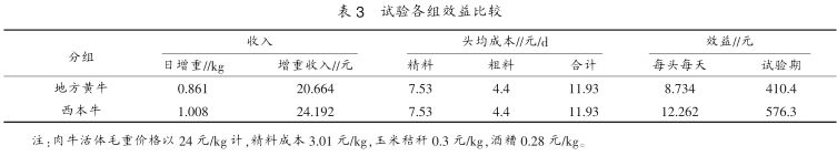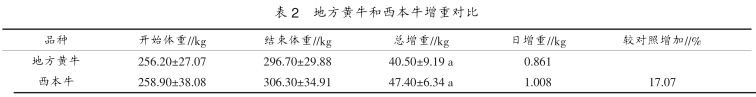 由表2可見,西本牛比地方黃牛生長(zhǎng)速度快,提高了17.07%。
