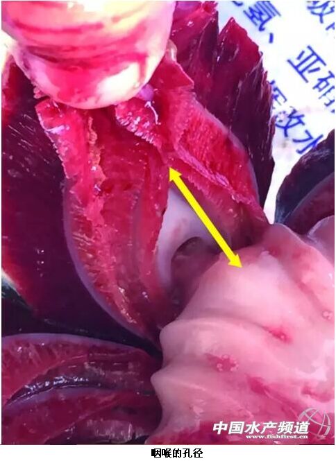 鳙魚為濾食性魚類,其主要進食微小的浮游動物和浮游植物,所以我們日常使用的2.0mm、3.0mm顆粒的飼料粒徑不適用于鳙魚,鳙魚進食顆粒的大小主要取決于鰓耙間隙和咽喉的孔徑(見圖)。目前通威股份在華南地區(qū)推廣的飼料投喂模式為“133粉料+151膨化料”模式,飼料使用過程中要針對不同規(guī)格的鳙魚使用不同粒徑的飼料,若前期使用大粒徑的膨化料,則會因為難以通過其咽喉被吐出,所以在此階段最好使用粉料投喂。而到了后期,鳙魚到了半斤以上,隨著鳙魚的生長,鰓耙的間距也較前期加大,粉料會隨著水流從加大的鰓耙間距排出,使鳙魚從外界攝取的餌料減少,從而影響鳙魚的生長,很多精養(yǎng)鳙魚的客戶反應使用粉料在1斤半后生長速度減緩則多由此引起,所以養(yǎng)殖過程中選擇鳙魚飼料時一定要考慮存塘鳙魚的規(guī)格來定,而通威“133粉料+151膨化料”模式則很好的解決了這一問題。