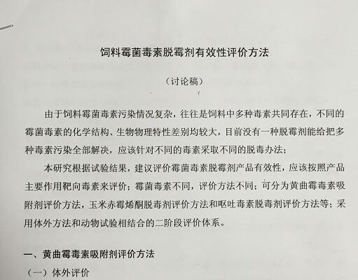 “飼料霉菌毒素有效性評(píng)價(jià)方法”討論稿首頁(yè)(圖)