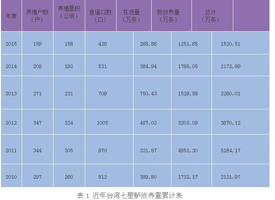 我國臺灣地區(qū)早在1956年時就有七星鱸的人工養(yǎng)殖,當(dāng)時在桃園地區(qū)農(nóng)民將天然七星鱸苗放入大池塘中和草、鯉、鰱、吳郭魚等魚混養(yǎng)。每年12月到翌年3月,沿海漁民在撈捕虱目魚苗、烏魚苗的同時,也會捕撈到七星鱸魚苗,但是捕獲量時多時少,魚苗每尾售價在臺幣10元以上。