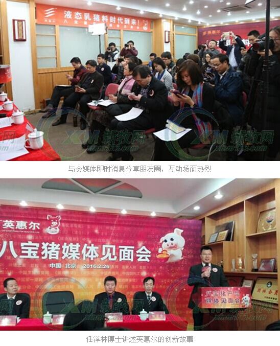 發(fā)布會現(xiàn)場,公司董事長任澤林博士講述了英惠爾的創(chuàng)新故事,任博士介紹這幾年行業(yè)不景氣,但是自古亂世出英雄。在行業(yè)不景氣的狀況下,企業(yè)一定要做有創(chuàng)新的產(chǎn)品:一要做能實(shí)現(xiàn)的創(chuàng)新,二要做有市場容量的產(chǎn)品,三是要做有未來的創(chuàng)新。以生物技術(shù)為核心的生物營養(yǎng)無疑是未來行業(yè)的發(fā)展方向。任博士談產(chǎn)品創(chuàng)新的得與失:英惠爾只有35%的產(chǎn)品創(chuàng)新是成功的。萬里長城今猶在,不見當(dāng)年"禽始黃",英惠爾在創(chuàng)新的路上有過若干個(gè)失敗的產(chǎn)品,其中殼寡糖還是北京市第一個(gè)拿到新飼料添加劑批號的產(chǎn)品,膽堿的廣告語“因憤怒而生產(chǎn)膽堿”也曾經(jīng)紅遍大江南北,但有的因?yàn)樵瞎?yīng)不上,有的因?yàn)槭袌鋈萘刻?,這些產(chǎn)品最終都忍痛砍掉了。但是英惠爾人堅(jiān)信“只要支持創(chuàng)新,我們就會始終行進(jìn)在正確的道路上?!币舱堑靡嬗谶@種長期堅(jiān)持創(chuàng)新的努力,才有“八寶豬”這樣的開創(chuàng)性產(chǎn)品的誕生。