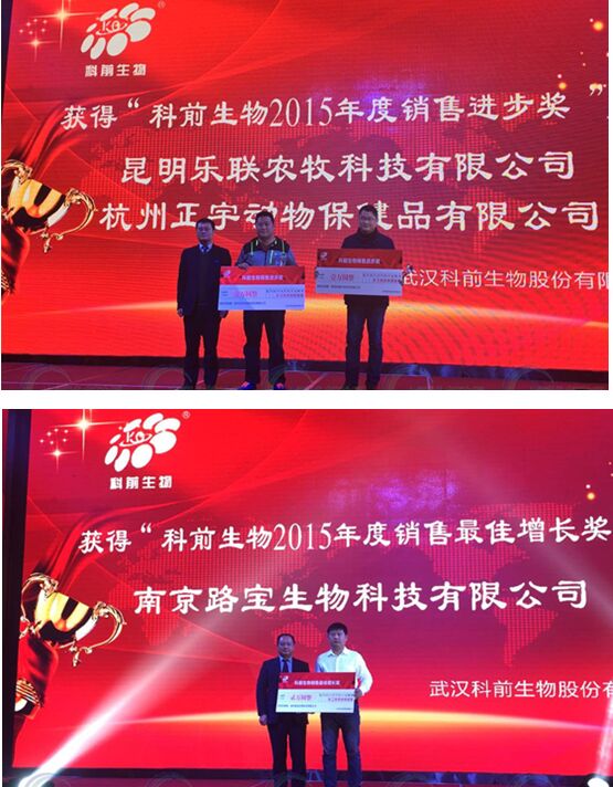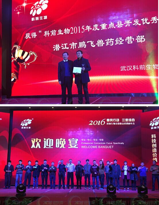 湯細(xì)彪博士為到場經(jīng)銷商介紹科前本年度主打的“春風(fēng)行動(dòng),三金組合”活動(dòng)。三金即:HB98株活疫苗+鄂A株滅活疫苗黃金組合,解決規(guī)模化豬場偽狂犬病大流行問題;科流寧+科肺寧白金組合,解決豬流感和傳染性胸膜肺炎;科圓寧+科喘寧紫金組合解決圓環(huán)和支原體問題。三個(gè)產(chǎn)品組合策略分別針對三個(gè)類型的豬病的整體解決。2016年科前將致力于這種優(yōu)勢產(chǎn)品組合與方案營銷策略的推廣以及全國范圍標(biāo)桿大客戶的樹立。