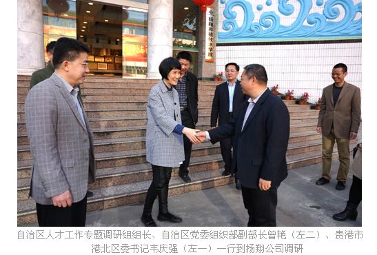 曾艷一行對(duì)揚(yáng)翔公司所做的努力給予高度評(píng)價(jià),她說(shuō):揚(yáng)翔公司人才隊(duì)伍建設(shè),人才管理模式為我區(qū)“雙核驅(qū)動(dòng)”戰(zhàn)略、構(gòu)建“三區(qū)統(tǒng)籌”格局的新部署新要求起了一個(gè)很好的示范作用,對(duì)我市乃至我區(qū)經(jīng)濟(jì)帶的產(chǎn)業(yè)布局,促進(jìn)貴港市經(jīng)濟(jì)發(fā)展的同時(shí),為經(jīng)濟(jì)帶人才資源開(kāi)發(fā),推進(jìn)人才體制機(jī)制改革起到很好的借鑒作用。