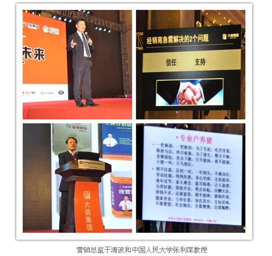 中國(guó)人民大學(xué)農(nóng)業(yè)發(fā)展學(xué)院黨委書記、副院長(zhǎng)張利庠教授,以幽默詼諧的講課風(fēng)格,再次就經(jīng)銷商如何轉(zhuǎn)型升級(jí)做了題為《中國(guó)畜牧與經(jīng)銷商發(fā)展趨勢(shì)》的精彩演講,分析了經(jīng)銷商為什么轉(zhuǎn)型、跟誰(shuí)轉(zhuǎn)以及經(jīng)銷商的六種類型;張教授從政治、經(jīng)濟(jì)、人生等多方面切入主題,充分肯定了大信的轉(zhuǎn)型趨勢(shì)和未來(lái)發(fā)展方向。