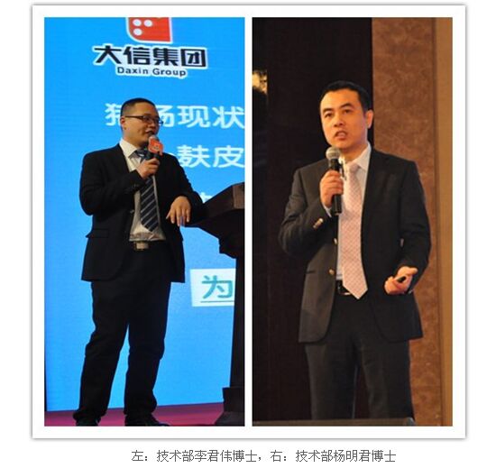 大信十年,一直專注于做好豬料產(chǎn)品,而創(chuàng)新則是一個(gè)企業(yè)賴以生存和發(fā)展的源動(dòng)力,技術(shù)部的李君偉博士介紹了大信的兩款功能性產(chǎn)品,一是脫僵寶,養(yǎng)殖過(guò)程中產(chǎn)生僵豬的原因大概有四種,食僵,病僵,蟲僵和奶僵,脫僵寶針對(duì)僵豬消化和吸收差,腸道菌群紊亂、免疫力低以及器質(zhì)性損失等生理特點(diǎn),使內(nèi)臟器官得到二次發(fā)育,對(duì)每頭僵豬投入20元,即可減少260元的隱性經(jīng)濟(jì)損失;產(chǎn)品二是貝貝爽,針對(duì)現(xiàn)在豬場(chǎng)大多存在的用麩皮接生的缺點(diǎn),即吸水力差、含有霉菌毒素,降低仔豬免疫力的特點(diǎn),貝貝爽可以使剛出生的小豬保持皮膚干爽,加快臍帶脫落,改善保溫箱的環(huán)境,使小豬盡快吃到初乳。