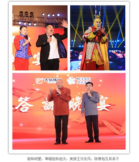2016大信經(jīng)銷商年會(huì),精彩紛呈,晚宴還邀請(qǐng)到星光大道的眾多明星前來(lái)助陣表演,大信飼料代言人陳寒柏更是攜弟子親臨晚會(huì)現(xiàn)場(chǎng),本次年會(huì)在豐盛的晚宴和精彩的演出中落下帷幕,我們預(yù)祝大信的未來(lái)走的更堅(jiān)定,明天更美好!