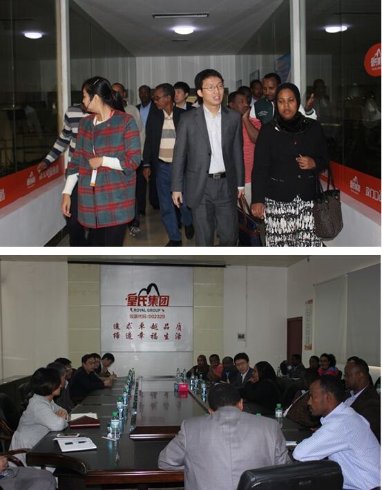 3月1日上午,由中央書記處社會組織與盟黨事務(wù)部部長、總理社會事務(wù)顧問(正部級)穆菲哈特?艾哈默德(女)帶領(lǐng)的埃塞俄比亞人民革命民主陣線干部考察團(tuán)一行20人,在中共中央對外聯(lián)絡(luò)部四局處長戴旭、中共中央對外聯(lián)絡(luò)部四局三秘兼翻譯彭永嘉、中共中央對外聯(lián)絡(luò)部四局國際交流中心干部石昌帥以及自治區(qū)外辦國際合作處主任科員張志峰、高新區(qū)黨辦常務(wù)副主任劉鋒、高新區(qū)經(jīng)發(fā)局副局長盧曉峰等領(lǐng)導(dǎo)的陪同下,來到皇氏集團(tuán)考察。集團(tuán)黨支部書記關(guān)文超、行政部經(jīng)理石愛萍接待了考察團(tuán)一行。