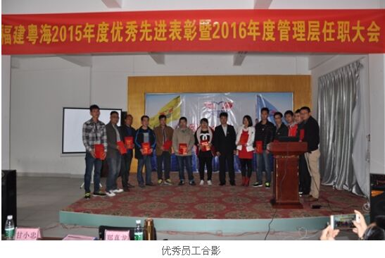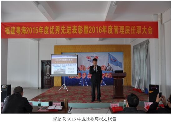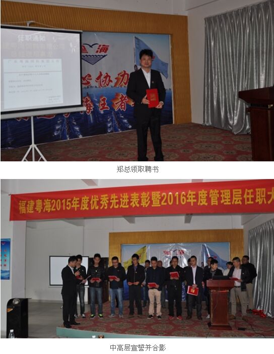 接著由鄭總宣讀福建粵海各中層任命文件并給各中層頒發(fā)聘書,之后,鄭總帶領福建粵海新一屆中層隆重宣誓:必須全力以赴完成集團下達的各項任務指標,為集團2016年度實現(xiàn)百萬噸目標貢獻福建粵海一份力量。