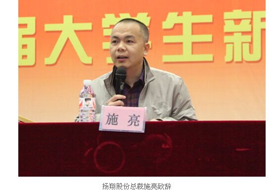 公司總裁施亮先生在致詞時(shí)對(duì)大學(xué)生們提出了三點(diǎn)轉(zhuǎn)變:“轉(zhuǎn)變角色”、“轉(zhuǎn)變思維”和“轉(zhuǎn)變行為”,希望大學(xué)生能夠落腳基層,從“新”出發(fā),能夠在揚(yáng)翔實(shí)現(xiàn)自身的價(jià)值,揚(yáng)翔也樂(lè)于為大家提供充足的發(fā)展平臺(tái)。