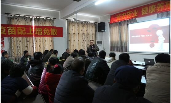 “我們是來送最前沿的技術(shù)給養(yǎng)殖朋友的,并不是單獨(dú)的一個(gè)產(chǎn)品推廣會(huì)”,“我們要倡導(dǎo)一種對的模式,并毫無保留的執(zhí)行下去”這是小編在與韋老板做會(huì)前溝通時(shí)記憶猶新的幾句話,這么簡單的幾句話或許就是眼前這位老板為何年少有為的原因吧-----一種高度為養(yǎng)殖朋友負(fù)責(zé)的責(zé)任心!方圓獸藥城是一個(gè)重質(zhì)量、保安全的經(jīng)銷商,他們承諾服務(wù)質(zhì)量、出售的獸藥符合法定治療標(biāo)準(zhǔn)、絕不售假劣獸藥、指引養(yǎng)殖朋友養(yǎng)殖方向、注重畜禽健康養(yǎng)殖保健、以養(yǎng)殖朋友最終養(yǎng)殖效益衡量自身的服務(wù)成績,正因?yàn)閷ψ约哼@樣嚴(yán)格的要求,方圓獸藥城在原陽縣當(dāng)?shù)睾苡型?,也正因?yàn)橛羞@樣的嚴(yán)格要求,韋老板對自己的合作伙伴們也有著諸多考量如:研發(fā)實(shí)力要強(qiáng),產(chǎn)品必須符合國家標(biāo)準(zhǔn),服務(wù)理念與方案必須先進(jìn)等等,方圓獸藥城與冀農(nóng)藥業(yè)的攜手是對我們實(shí)力最好的肯定,“同一個(gè)理念,同一個(gè)方向,同一個(gè)價(jià)值觀”讓我們與方圓獸藥城的合作越來越密切,經(jīng)過精心的準(zhǔn)備我們冀農(nóng)健康養(yǎng)殖中國行課程走進(jìn)了原陽,走進(jìn)了方圓獸藥城,并取得了很大的成功,這是與我們合作雙方的努力所分不開的。