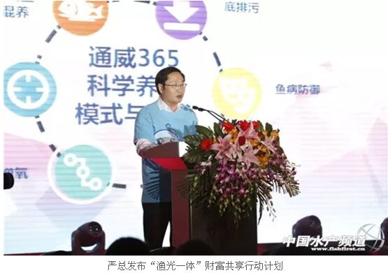 通威股份副董事長嚴虎向來賓介紹了“漁光一體”財富共享行動計劃。嚴總談到,通威漁光一體項目是基于擁有自主知識產(chǎn)權(quán)的“互聯(lián)網(wǎng)+”漁業(yè)設(shè)施工程運用,能大大推動并引領(lǐng)我國水產(chǎn)養(yǎng)殖規(guī)?;?、智能化發(fā)展,使人均管理養(yǎng)殖面積從現(xiàn)有的20-200畝提升至500-1000畝。未來一段時間,通威股份將逐步整合全國近千萬畝優(yōu)質(zhì)養(yǎng)殖水面資源,在漁光一體項目中植入通威365科學(xué)養(yǎng)殖模式與技術(shù),徹底解決傳統(tǒng)養(yǎng)殖系列問題,提升養(yǎng)殖戶收益。