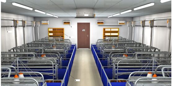 全機械負(fù)壓通風(fēng)可以適用于各種氣候環(huán)境下,可以保證豬舍所需溫度,被越來越多的養(yǎng)殖場接受。但是設(shè)備投資較大,而且往往應(yīng)用與年平均氣溫變化較大的地區(qū),或者對溫度要求較高的帶仔豬舍,如分娩舍、保育舍。