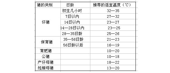保育舍的通風(fēng)模式與產(chǎn)房相同,只是在溫度控制上有差異。下表為各階段豬只事宜溫度,僅供參考。