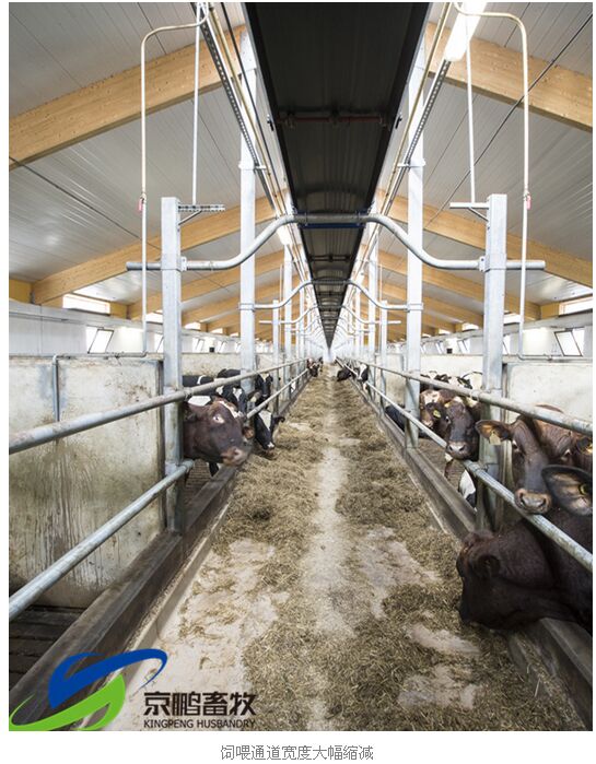 傳送帶式自動(dòng)飼喂系統(tǒng)所需飼喂面寬可縮小至1.5~1.8m,與常規(guī)牛舍相比,大大節(jié)省土地面積及建筑面積,進(jìn)而降低了建筑和土地成本。