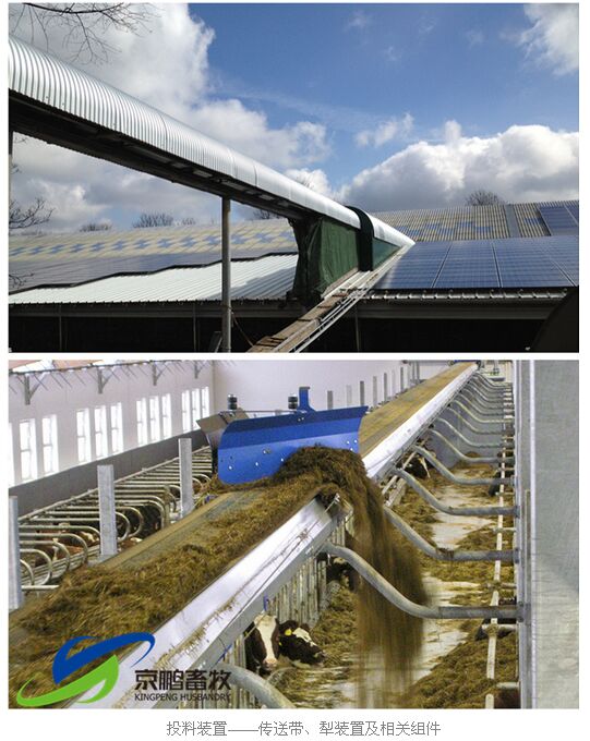傳送帶式自動(dòng)飼喂系統(tǒng)由填料攪拌裝置、投料裝置、飼養(yǎng)管理控制系統(tǒng)組成。各模塊的良好運(yùn)行,讓牛吃到最新鮮可口的飼料。