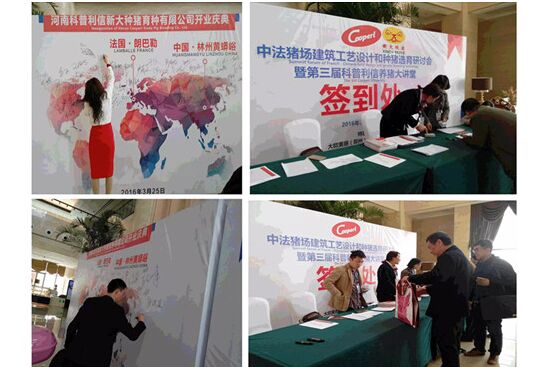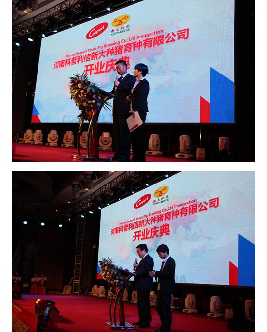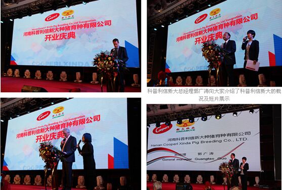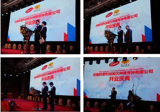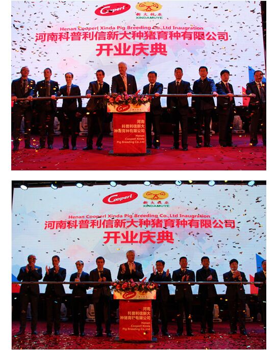 3月25日上午河南科普利信新大種豬有限公司舉行盛大的開業(yè)慶典,法國駐中國公使銜參贊菲利普·布岳、法國朗巴勒市市長盧·考赫、安陽市市長王新偉、河南省畜牧局局長楊文明、法國Cooperl集團董事會主席帕特里克·德里克以及CEO高默、新大牧業(yè)董事長李長青以及科普利信新大董事長毛億恩等分別致祝賀辭。