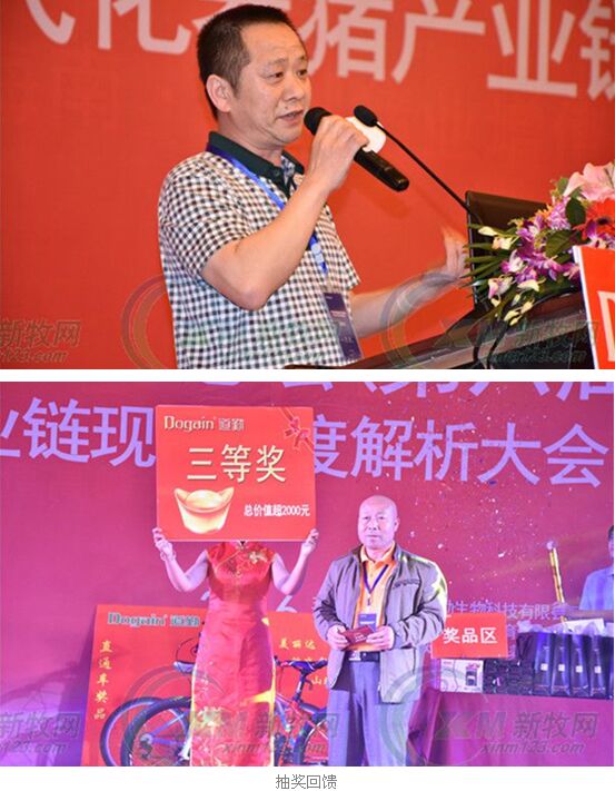《農(nóng)財(cái)寶典·畜牧版》主編、新牧網(wǎng)副總編輯彭進(jìn)致辭,他祝賀會(huì)議成功召開(kāi),分享了農(nóng)財(cái)寶典和新牧網(wǎng)能夠給養(yǎng)豬業(yè)帶來(lái)的四大增值服務(wù):數(shù)據(jù)搜索,價(jià)值判斷,平臺(tái)連接,行業(yè)維權(quán)。