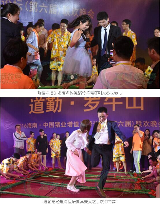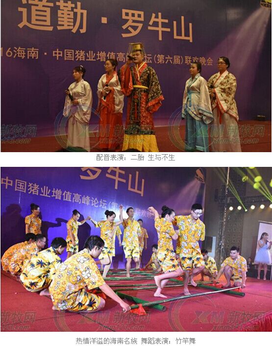 3月28日,由長(zhǎng)沙道勤生物科技有限公司(以下簡(jiǎn)稱(chēng)道勤)主辦、海南羅牛山種豬育種有限公司(以下簡(jiǎn)稱(chēng)羅牛山)協(xié)辦的中國(guó)豬業(yè)增值高峰論壇(第六屆)暨現(xiàn)代化養(yǎng)豬產(chǎn)業(yè)鏈現(xiàn)場(chǎng)深度解析大會(huì)在??诔晒εe辦,并于當(dāng)晚舉辦了聯(lián)歡晚會(huì),海南民族特色舞蹈竹竿舞驚呆了現(xiàn)場(chǎng)來(lái)自全國(guó)的600多名養(yǎng)豬人。