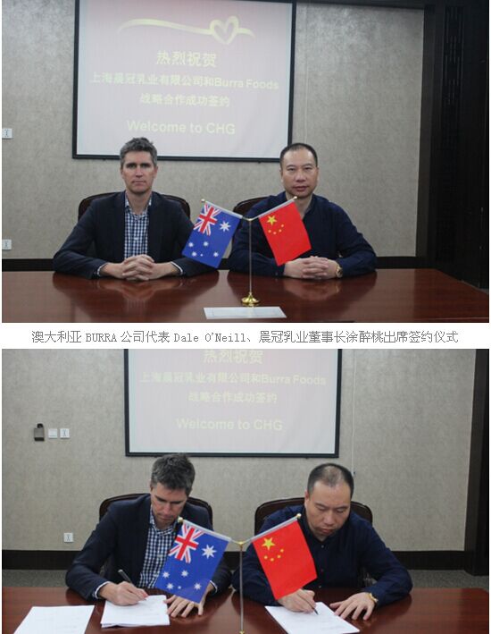 晨冠乳業(yè)與澳大利亞BURRA公司通過近兩年間真誠溝通,最終目標達成一致,形成戰(zhàn)略伙伴關(guān)系。相信通過雙方的戰(zhàn)略合作,資源互補,將更好地向中國市場客戶提供安全、放心、營養(yǎng)、健康產(chǎn)品,在嬰幼兒乳制品行業(yè)共創(chuàng)輝煌。