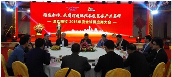 3月30日下午,廣東南牧機(jī)械設(shè)備有限公司(以下簡稱南牧)2016年度全球供應(yīng)商大會(huì)在溫氏股份總部大樓舉辦。會(huì)上,南牧回顧了2015采購工作,表彰了優(yōu)秀供應(yīng)商并舉行了陽光采購行動(dòng)簽約儀式。來自全球100多家供應(yīng)商共200多人參加。南牧生產(chǎn)部采購組黃沛玲擔(dān)任大會(huì)主持人。南牧高管表示,南牧將部署做成南牧裝備集聚平臺(tái),預(yù)計(jì)業(yè)務(wù)承接將從目前的5.2億元發(fā)展到20億元以上。