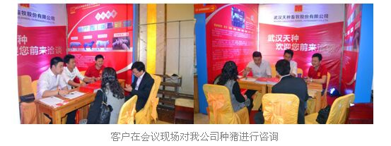 會(huì)議室旁邊設(shè)立的動(dòng)保、種豬、飼料、設(shè)備等商家展位,為促進(jìn)養(yǎng)殖戶與商家的相互了解與合作提供了交流平臺(tái)。展位走道上,人頭攢動(dòng),在我公司展位上,不斷有新老客戶前來(lái)咨詢種豬。其中,部分新客戶對(duì)公司情況及種豬品種進(jìn)行了咨詢,并表示,希望有機(jī)會(huì)與我公司進(jìn)行深度合作。