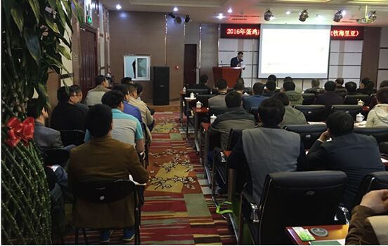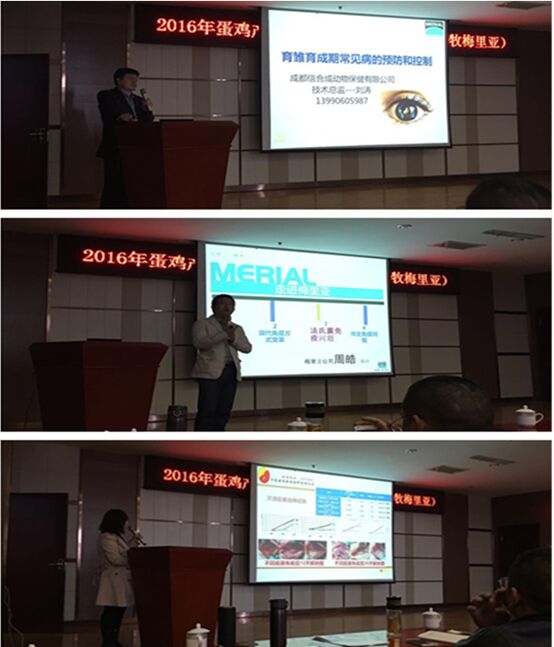 信合成動物保健有限公司技術總監(jiān)劉濤先生以“育雛育成期常見病的預防和控制”為題,一一介紹了目前全國范圍內的主要流行性疾病,并就常見疾病進行重點講解和治療案例分析。梅里亞西北西南區(qū)銷售總監(jiān)周皓先生以“走進梅里亞”為題,就動物疾病預防控制重點介紹了梅里亞生物制品產(chǎn)業(yè)的優(yōu)勢地位,并對部分產(chǎn)品的保護作用進行現(xiàn)場講解。