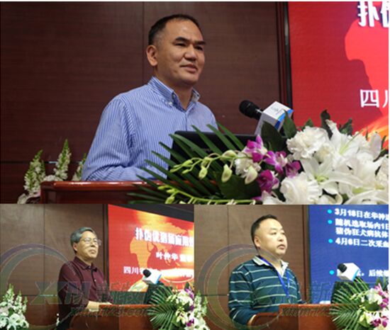 豬場代表現(xiàn)身說法,對撲偽優(yōu)的免疫效果給予一致肯定。(上)四川遠(yuǎn)大牧業(yè)發(fā)展有限公司董事長施勇、(左下)四川省眉山萬家好種豬繁育有限公司董事長葉仲華、(右下)四川省畜牧科學(xué)研究院養(yǎng)豬研究所曾凱