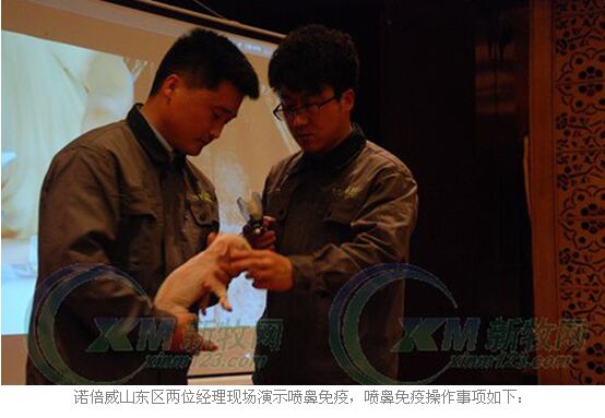 2016年4月7日,浙江諾倍威生物技術(shù)有限公司(下簡稱諾倍威)將新的技術(shù)理念和創(chuàng)新的產(chǎn)品帶到山東,將為齊魯大地養(yǎng)豬業(yè)的興盛貢獻(xiàn)一份力量;本次諾倍威“豬群健康呼吸總動員 百千萬實(shí)踐”活動上,600頭母豬以上規(guī)模的養(yǎng)殖戶80余人走進(jìn)濟(jì)南,來此感受新技術(shù)、新產(chǎn)品——可噴鼻免疫的支原體疫苗(喘凈威)所帶來的便利與功效。從現(xiàn)場養(yǎng)殖戶認(rèn)真、主動的學(xué)習(xí)氛圍,可以看出其觀念的轉(zhuǎn)變和思維的創(chuàng)新!