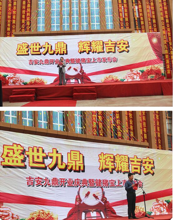 借著開業(yè)慶典的東風(fēng),吉安九鼎農(nóng)牧有限公司總經(jīng)理宣布了九鼎集團無抗飼料健豬寶在吉安九鼎的上市,標(biāo)志著吉安九鼎無抗豬肉產(chǎn)業(yè)鏈正式啟動。