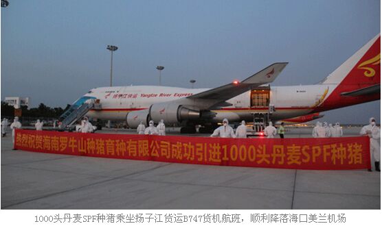 這批種豬全部來(lái)自丹麥Porc-Ex育種股份有限公司SPF( 無(wú)特定病原)育種核心場(chǎng),具有血緣廣泛、育種指數(shù)高、健康水平高的特點(diǎn),主要包括長(zhǎng)白豬、大白豬、杜洛克豬等品種。經(jīng)過(guò)前期詳細(xì)周密的計(jì)劃與演練,工作人員與機(jī)場(chǎng)、動(dòng)檢、商檢、海關(guān)、貨代等多單位密切配合,在最短的時(shí)間內(nèi),完成了檢疫、卸機(jī)、清關(guān)、消毒和裝車等相關(guān)工作。4月26日凌晨,此批種豬順利運(yùn)送到羅牛山十萬(wàn)都現(xiàn)代化豬場(chǎng)隔離場(chǎng)進(jìn)行隔離。