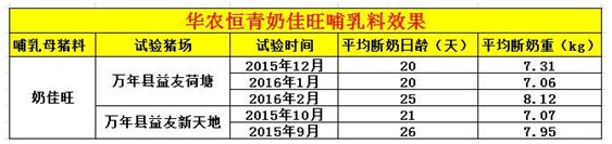 江西萬年益友農(nóng)業(yè)開發(fā)有限公司就是其中的一家,豬場(chǎng)的陸速總經(jīng)理就特別舍得給豬吃好的飼料,尤其是母豬,以前在華農(nóng)恒青本身已經(jīng)很高檔的哺乳母豬料里面還要額外加一個(gè)點(diǎn)的魚粉。陸總說,母豬料一定要好,價(jià)格貴點(diǎn)都沒有關(guān)系,因?yàn)槟肛i是豬場(chǎng)生存和發(fā)展的基礎(chǔ),要想養(yǎng)好豬,就一定要把根基先打好。鑒于此,華農(nóng)恒青在2015年豬價(jià)還很低的情況下逆勢(shì)推出了華農(nóng)恒青-奶佳旺,奶佳旺是華農(nóng)恒青哺乳母豬料的升級(jí)版,不但在魚粉上增加了添加量,還特別添加了其他飼料公司舍不得添加的特色功能性添加劑,微生態(tài)制劑等,奶佳旺傾向于供應(yīng)給對(duì)母豬特別重視的豬場(chǎng)。如奶佳旺在江西萬年益友農(nóng)業(yè)開發(fā)有限公司幾個(gè)豬場(chǎng)使用已經(jīng)有將近一年的時(shí)間了,一年多的時(shí)間里面,豬場(chǎng)老板也一直在關(guān)注斷奶數(shù)據(jù),下圖節(jié)選了兩個(gè)豬場(chǎng)的部分?jǐn)?shù)據(jù):