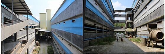 高層豬舍更理想的是在原有的養(yǎng)殖場,水、電、路管理房、環(huán)保設(shè)施等附屬設(shè)施都基本配套的情況,又需要擴(kuò)大養(yǎng)殖規(guī)模,周邊又沒有足夠空地可用,這樣可以把老舊豬舍進(jìn)行升級改造建高層.或在周圍有限的地建高層.這樣又可以擴(kuò)展所需的養(yǎng)殖規(guī)模,又不要投入高達(dá)附屬設(shè)施30%-40%投資。這樣不僅沒有增加投入,返而可減少總體投入,以及用地審批難等。高層豬舍棟之間的距離約15米以上,高度每層3.8米,不宜超過五層,這樣采光、機(jī)械放氣不受影響,又具有集中管理、節(jié)省人工、操作方便等優(yōu)勢。