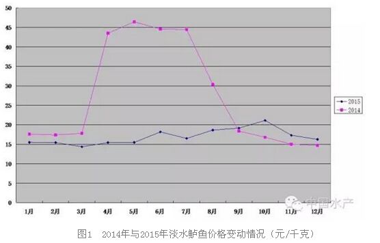 淡水鱸魚綜合出塘價格2014年16.40元/千克,2015年綜合出塘價格為17.32元/千克,比2014年增加0.92元/千克,增加率為5.61%。2014年1月至8月淡水鱸魚銷售價格一直高于2015年同期價格,特別是4月至7月價格大幅上升,但9至12月鱸魚大量上市的季節(jié)低于2015年同期的價格。