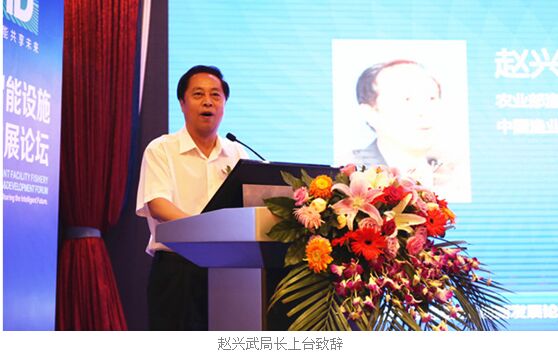 隨后,農(nóng)業(yè)部漁業(yè)漁政管理局局長、中國漁業(yè)協(xié)會會長趙興武上臺致辭。趙局長首先對全國各地的水產(chǎn)人相聚通威國際中心表示了熱烈的歡迎,并強(qiáng)調(diào),在此次論壇上,不僅有政府主管部門的領(lǐng)導(dǎo)為大家解讀設(shè)施漁業(yè)發(fā)展的政策方向,還有來自學(xué)界的專家們?yōu)榇蠹曳窒砬把氐目蒲谐晒?,更有來自行業(yè)一線的企業(yè)代表分享實(shí)踐經(jīng)驗(yàn)和生動案例,是大家交流學(xué)習(xí)、碰撞智慧的難得機(jī)會。