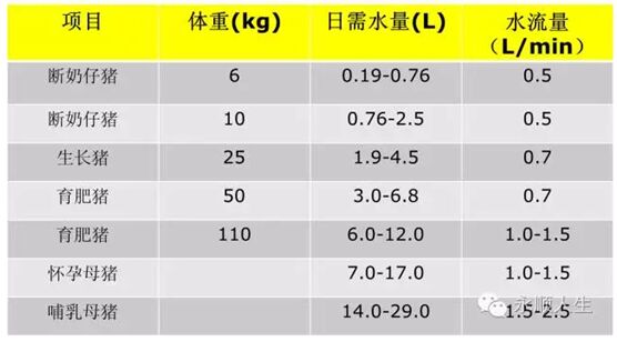 水是豬機(jī)體重要的組成部分之一,水對飼料的消化、吸收和豬體溫調(diào)節(jié)等生理機(jī)能起著十分重要的作用。高溫環(huán)境中,豬以蒸發(fā)散熱為主,飲水量增加,通過急促的呼吸將呼吸道的水汽排出體外,以水汽帶走體內(nèi)余熱。夏季豬場豬群飲水需要注意水壓和水溫,水壓過低,水流量不足會降低豬群采食量。供水管應(yīng)包有隔熱層或埋在土層下,防止太陽暴曬使水溫升高。