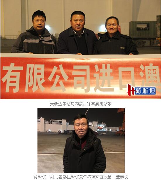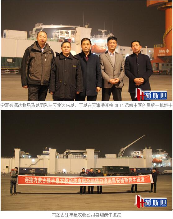2016年12月30,5500頭澳牛搭乘2016末班船,經(jīng)歷了半個多月的海上之旅順利抵達天津港。這是2016年最后一批跨洋遠嫁到中國的澳牛,由澳大利亞農(nóng)牧業(yè)出口有限公司(AUSTREX)出口,北京天牧達進出口有限公司引進。主要由內(nèi)蒙古綠豐泉農(nóng)牧科技有限公司、內(nèi)蒙古涼城縣海高牧業(yè)養(yǎng)殖有限責任公司、吉林省成恩牧業(yè)發(fā)展有限公司、寧夏興源達農(nóng)牧有限公司、吳忠市利通區(qū)春英奶牛養(yǎng)殖專業(yè)合作社、中衛(wèi)市沐沙畜牧科技有限公司、湖北曾都區(qū)幫權(quán)黃牛養(yǎng)殖家庭牧場、西藏自治區(qū)畜牧獸醫(yī)研究所、新疆西部牧業(yè)股份有限公司等6個省、自治區(qū)的9家企業(yè)引進。