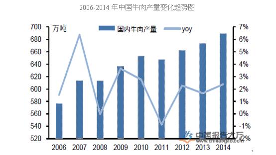 2013年我國肉牛養(yǎng)殖業(yè)變動(dòng)劇烈,其中肉牛養(yǎng)殖開始進(jìn)入緩慢恢復(fù)進(jìn)程,與2012年相比,2013年我國牛肉產(chǎn)量673.21萬噸,同比增長1.65%,2000年~2014年,我國的牛肉產(chǎn)量從513萬噸增長到689萬噸,增長了34.3%,年均增長2.1%,躍居世界第三位,占到世界牛肉總產(chǎn)量的10% 。