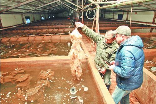 距大海僅幾十米的岸坡上,有座被遮蓋的密不透光的廠房。這就是綏芬河遠健進出口公司的海參種苗繁育基地。1000多立方米容積的海參繁育棚內(nèi),擺放著幾十個育苗池;池里,僅1厘米左右、像小小蚯蚓一樣的海參苗,正在育苗工人和技術(shù)人員的精心照顧下,茁壯成長。這些小小的參苗將在育苗池里生長四五個月、重量達到0.3克后,放歸大海。因為繁育海參參苗后放歸大海,綏芬河遠健進出口公司獲得了在符拉迪沃斯托克等多個海域捕撈野生海參的權(quán)力。參苗繁育的同時,他們還在符拉迪沃斯托克等海域開展了扇貝等種苗的繁育,并成功進行了海參、扇貝幼苗的海洋底播。