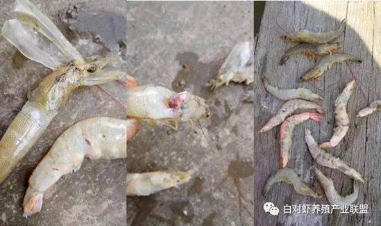 近幾天,由于“倒春寒”氣候的影響,氣溫忽高忽低,華南地區(qū)的白對(duì)蝦養(yǎng)殖情況有點(diǎn)急轉(zhuǎn)直下的態(tài)勢(shì):一是氣候變引起水變,水變導(dǎo)致對(duì)蝦出現(xiàn)應(yīng)激性問(wèn)題不斷,3月初投苗的池塘出現(xiàn)不上罾、減料、脫殼不正常、生長(zhǎng)緩慢、大小不均勻的情況;二是搭冬棚投苗較早的養(yǎng)殖戶,投苗已有近40天,大多也出現(xiàn)幼苗上料慢、長(zhǎng)速慢、大小不均勻的情況,部分能養(yǎng)得80-120支頭的養(yǎng)殖戶也現(xiàn)了偷死癥。如下圖:
