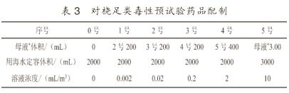 2 結(jié)果與討論 (1)兩種藥品對橈足類的毒性試驗(yàn)與結(jié)果。濃度梯度范圍選為0.002~10mL/m3,具體設(shè)置見表3。將挑選的橈足類按要求放入,每一濃度梯度設(shè)2個(gè)平行,定時(shí)進(jìn)行觀察。